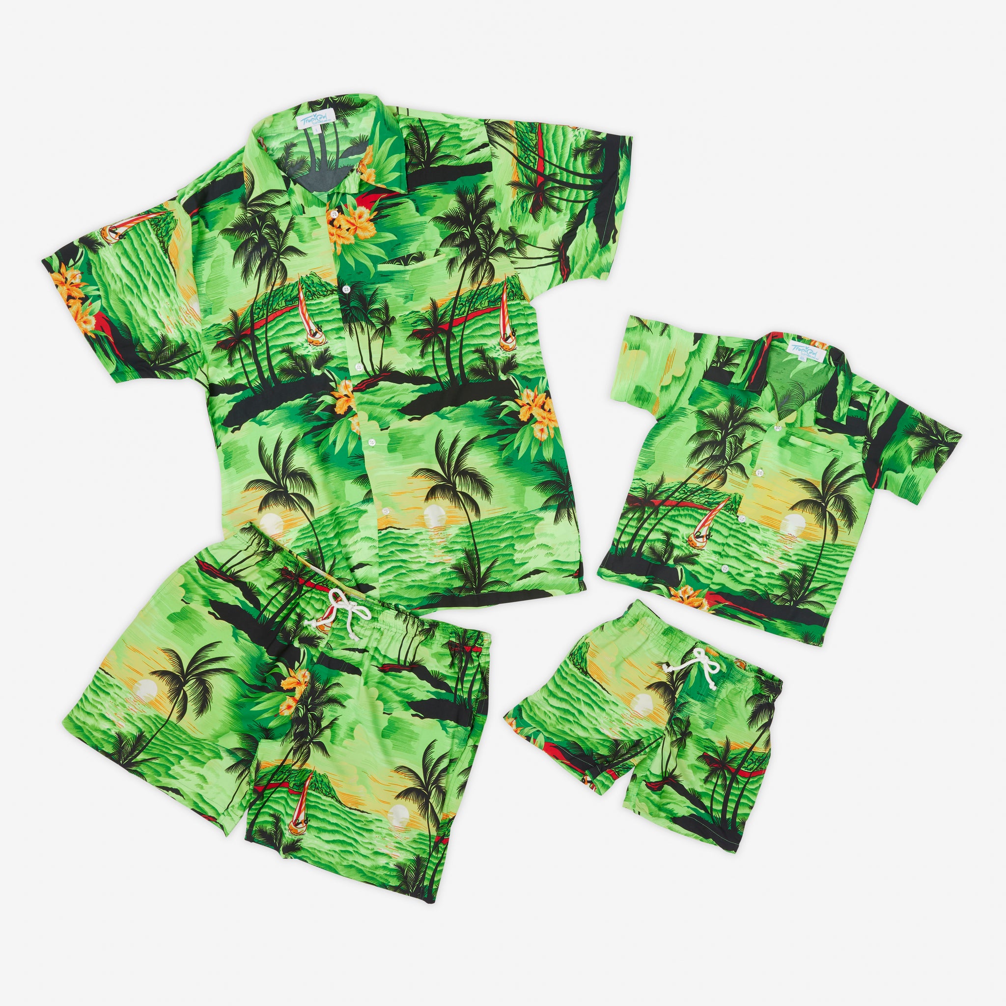 Matching Hawaiian shirt and shorts set for kids
